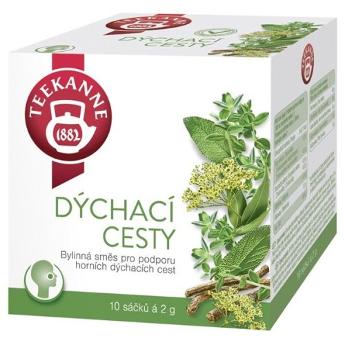 Bylinný čaj Teekanne Dýchací cesty - směs zeleného čaje a bylin se složkami, které působí na nachlazení Sáčky s přebalem Složení: plod fenyklu (40%), listy šalvěje (15%), pomerančová kůra, kořen lékořice …