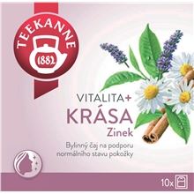 Bylinný čaj Teekanne Vitalita + krása obsahuje zinek, který podporuje zdraví pokožky a chrání ji před oxidačním stresem – ideální doplněk každodenní péče o krásu
