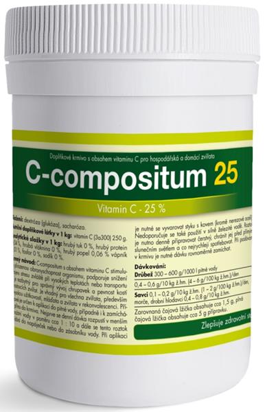 Problém: V období s vysokou venkovní teplotou dochází ve stájích a halách k přehřátí organismu zvířat, které se projevuje zrychleným dýcháním, snížením obranyschopnosti a nedostatečným příjmem krmiva, popř. až k úhynům, což má za následek zhoršení ekonomických ukazatelů užitkovosti. Složení v 1 kg: vitamin C 250 g, nosič - podíl glukózy min. 96 %. Způsob aplikace: Přípravek je určen k aplikaci do pitné vody, případně i k zamíchání přímo do krmiva. Nejprve se denní dávka rozpustí v menším množství vody v poměru cca 1 : 10 a dále se tento roztok přidává do napáječek nebo do zásobníku vody. Při podávání v krmivu je nutné dávku rovnoměrně zamíchat. Při aplikaci je nutné se vyvarovat styku s kovem (kromě nerezové oceli). Nedoporučuje se také použití v silně železité vodě. Během skladování a používání zamezit přístupu vzduchu k přípravku. V době extrémní zátěže je možné dávku zvýšit 2 – 3x po dobu 5 – 7 dnů. Dávkování: