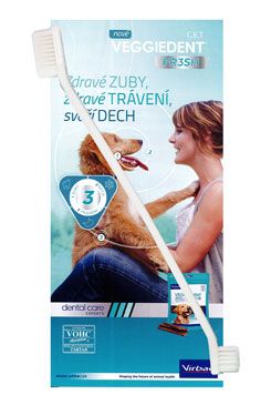 Oboustranný kartáček pro psy a kočky s měkkými štětinami.