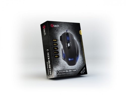Vynikající herní myš C-TECH AKANTHA, která je předurčená především hráčům počítačových her, ať už profesionálům tak i amatérům. Tato optická myš má skvělý tvar vhodný pro držení v pravé ruce i po velmi dlouhou dobu. Kromě perfektního ergonomického tvarování s pogumovaných povrchem, vám jistě neunikne ani její perfektní design. Nabízí příjemné a velmi elegantní modré LED podsvícení. Myš je osazena optickým senzorem o rozlišení 2400 DPI s flexibilní možností přepínat rozlišení ve 4 úrovních pomocí DPI tlačítka.
