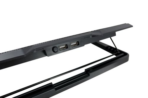 Chladící podložka CLP-140 je moderní chladící podložka určena pro notebooky do velikosti 15,6". Je brán maximální ohled na kvalitu chlazení tak, aby nedocházelo ke zpomalování chodu notebooku v důsledku přehřívání a zaroveň tak prodloužit jeho vlastní životnost. Hlavním parametrem podložky je chladící výkon a celková hlučnost, kterou produkují použité ventilátory. Chladící podložka CLP-140 je vybavena dvěmi tichými ventilátory o velikosti 140mm s LED podsvětlením a možností zapnutí/ vypnutí chodu ventilátoru. Pro lepší ergonomii má podložka stavitelný podstavec s 6 polohami sklonu.
