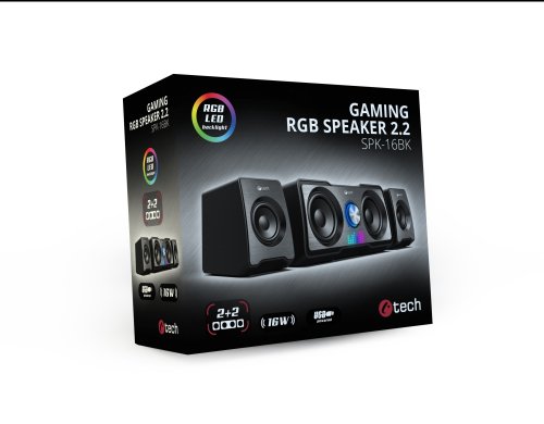 Kompaktní PC reproduktory C-tech SPK-16BK 2.2 vám zprostředkují kvalitní zvuk s výkonem 16W a frekvenčním rozsahem 150-20kHz. Díky unikátní kombinaci měničů 2+2 je reprodukovaný zvuk bohatší a více dynamický, takže si jej využijete nejen při poslechu oblíbených skladem, ale i při hraní her. O jedinečnou atmosféru při poslechu hudby se postará automatické RGB podsvícení. K ovládání hlasitosti poslouží regulátor nacházející se na jednom z reproduktorů. Tento regulátor slouží k zapnutí a vypnutí zařízení. Připojení soustavy k zařízením zajistí kabel s 3,5mm jackem, napájení zase USB kabel.