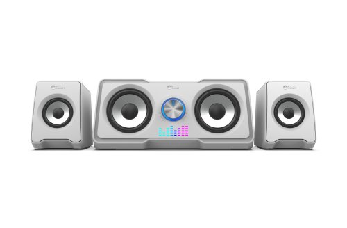 Kompaktní PC reproduktory C-tech SPK-16WH 2.2 vám zprostředkují kvalitní zvuk s výkonem 16W a frekvenčním rozsahem 150-20kHz. Díky unikátní kombinaci měničů 2+2 je reprodukovaný zvuk bohatší a více dynamický, takže si jej využijete nejen při poslechu oblíbených skladem, ale i při hraní her. O jedinečnou atmosféru při poslechu hudby se postará automatické RGB podsvícení. K ovládání hlasitosti poslouží regulátor nacházející se na jednom z reproduktorů. Tento regulátor slouží k zapnutí a vypnutí zařízení. Připojení soustavy k zařízením zajistí kabel s 3,5mm jackem, napájení zase USB kabel.