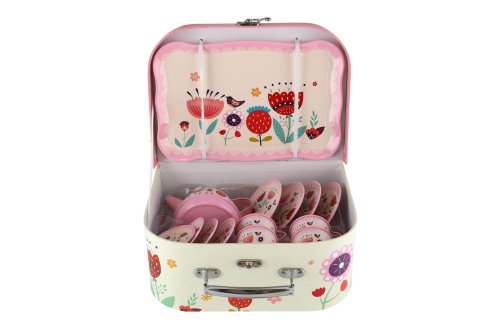 Čajová souprava je nezbytné vybavení každého dětského pokoje. Každá malá hospodyňka ho musí mít ve své kuchyňce, aby mohla slavnostně pohostit každou návštěvu! Čajová souprava umožňuje hrát si o samotě a připravit čaj pro panenky, medvídka nebo sourozence či rodiče. Nebo si můžete s přáteli uspořádat nezapomenutelný čajový dýchánek. Souprava obsahuje konvičku, 4ks šálků, 4ks podšálků, 4ks talířků a podnos. Vše je uloženo v praktickém kufříku. Rozměry balení 26 x 19 x 11 cm. Vhodné pro děti od 3 let.