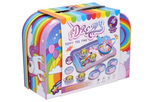 Čajový set v kufříku, jednorožec. Rozměry kufříku s rukojetí 25 x 19 x 10 cm. Obsah balení - konvice, 4 x šálek, 4 x podšálek, 4 x talířek. Vyrobeno z kovu.