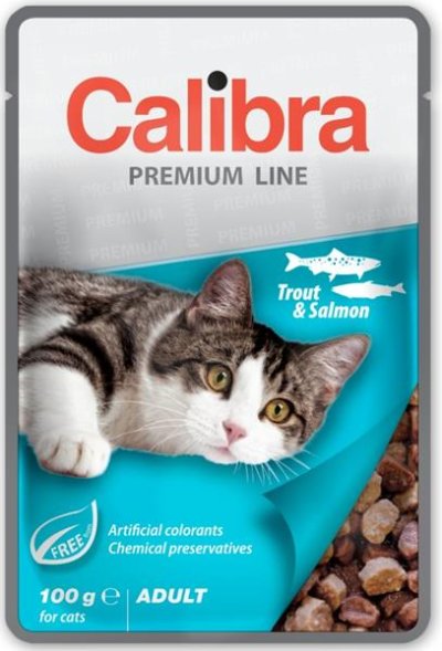 Lahodná kapsička s kombinací pstruha a lososa v delikatesní omáčce pro milovníky ryb. Kompletní prémiové krmivo pro dospělé kočky s masovými kousky v omáčce. Vyrobeno bez umělých barviv a konzervačních látek. Složení: Maso a výrobky živočišného původu (64 % v kouscích), ryby a vedlejší výrobky z ryb (5 % pstruh, 5 % losos), vedlejší výrobky rostlinného původu, minerální látky. Analytické složky: Vlhkost 82 %, hrubý protein 9 %, hrubý tuk 4,5 %, hrubý popel 3 %, hrubá vláknina 1 %. Nutriční doplňkové látky v 1 kg: vitamin D3 250 m.j., vitamin E 25 mg, zinek (síran zinečnatý, monohydrát) 10 mg, mangan (oxid manganatý) 2,5 mg, taurin 450 mg, biotin 50 µg. Doporučené dávkování: Při podávání je nutné zajistit přístup kočky k nezávadné čerstvé pitné vodě. Po otevření skladujte v chladničce a spotřebujte do 48 hodin. Skladujte v suchu a chladu.