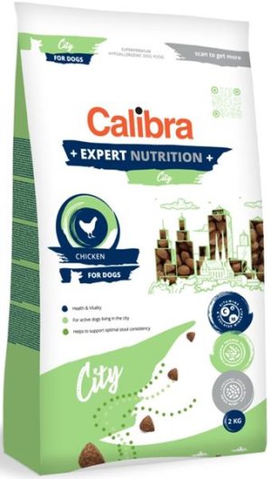 Calibra Dog Expert Nutrition City jsou hypoalergenní granule pro dospělé městské psy, kteří žijí aktivním stylem života. Toto kompletní krmivo obsahuje zvýšené množství vitaminů a minerálů, které podporují celkové zdraví a vitalitu psa. Složení obohacené o antioxidanty, které mimo jiné snižují výskyt volných radikálů, je přizpůsobeno životnímu stylu psa chovaného v prašném městském prostředí a jeho potřebám při aktivním životě. Složení receptury pomáhá navíc podporovat zdravé zažívání a optimální konzistenci stolice.