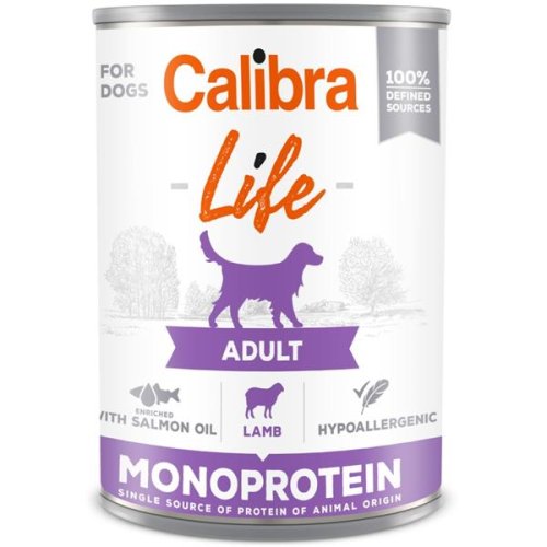 Calibra Dog Life Adult Lamb – receptura konzervy s jehněčím je kompletním krmivem, které je určené pro dospělé psy.