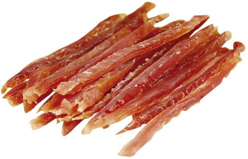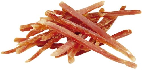 Zdravý, voňavý a lehce stravitelný pamlsek, který skvěle obohatí jídelníček vašeho mazlíčka. Pochoutka z kachního masa pro všechny pejsky s velkým apetitem. Díky vysokému obsahu kvalitních proteinů a nízkému obsahu tuku je vhodná i pro psy s citlivým zažíváním. Doplňkové krmivo pro psy. Složení: Kachní maso, rostlinný protein, glycerin, kukuřičný škrob. Analytické složky: Hrubý protein 50 %, obsah tuků 5 %, hrubá vláknina 3 %, hrubý popel 3 %, vlhkost 20 % Doporučené dávkování: Podávejte jako odměnu. Zajistěte dostatek čerstvé pitné vody. Uchovávejte na suchém a chladném místě. Po otevření obal opět uzavřete a uložte do chladničky. Není určeno pro konzumaci člověkem. Nedávejte absorbent vašemu psovi.