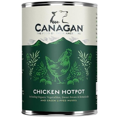 Šťavnatá masová konzerva Canagan Chicken Hotpot For Dogs. Kuřecí ragú v receptuře bez obilovin - kompletní krmivo pro dospělé psy. CANAGAN konzervy pro psy představují kompletní a vyvážená krmiva, vyráběná bez obilovin, s bio zeleninou i ovocem a čerstvým masem či rybami. Veškeré suroviny jsou dováženy čerstvé každý den a s láskou zpracovávány do jedinečných receptur pro naše čtyřnohé přátele. PŘÍRODNÍ PÉČE O KLOUBY - zelené škeble (Slávka zelenoústá) jsou přirozeným zdrojem glukosaminu. Lososový olej poskytuje množství esenciálních omega 3 mastných kyselin. NEJLEPŠÍ KOUSKY MASA - díky křehkým kouskům masa a ryb jsou krmiva CANAGAN tak vynikající i zdraví prospěšná. Složení: čerstvě připravené kuřecí maso (65 %), batáty (sladké brambory), bio mrkev, bio hrách, bio brokolice, minerální látky, slávka zelenoústá*, lososový olej, bio jablka, bio špenát, mořské řasy, petržel, juka, šípky, kopřiva, měsíček, jilm, anýz, máta, rozmarýn.