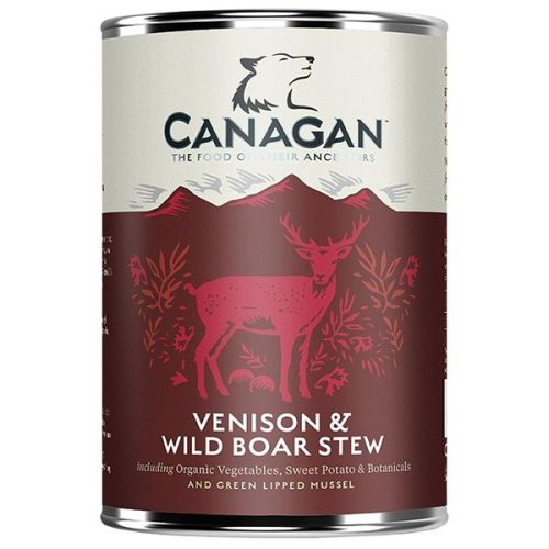 Šťavnatá masová konzerva Canagan Venison & Wild Boar Stew. Dušená pochoutka ze zvěřiny a divočáka v receptuře bez obilovin - kompletní krmivo pro dospělé psy. CANAGAN konzervy pro psy představují kompletní a vyvážená krmiva, vyráběná bez obilovin, s bio zeleninou i ovocem a čerstvým masem či rybami. Veškeré suroviny jsou dováženy čerstvé každý den a s láskou zpracovávány do jedinečných receptur pro naše čtyřnohé přátele. PŘÍRODNÍ PÉČE O KLOUBY - zelené škeble (Slávka zelenoústá) jsou přirozeným zdrojem glukosaminu. Lososový olej poskytuje množství esenciálních omega 3 mastných kyselin. NEJLEPŠÍ KOUSKY MASA - díky křehkým kouskům masa a ryb jsou krmiva CANAGAN tak vynikající i zdraví prospěšná. Složení: čerstvě připravená zvěřina – vysoká (35 %), čerstvě připravené divoké prase (30 %), batáty (sladké brambory), bio mrkev, bio hrách, bio brokolice, minerální látky, slávka zelenoústá*, lososový olej, bio jablka, bio špenát, mořské řasy, petržel, juka, šípky, kopřiva, měsíček, jilm, anýz, máta, rozmarýn.