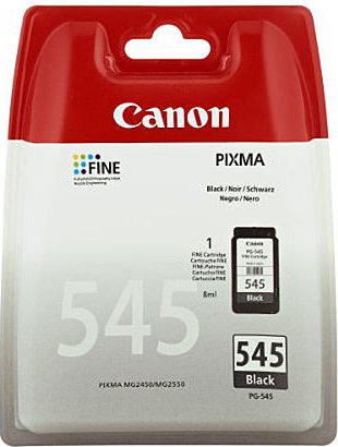 Pro multifunkční tiskárny Canon PIXMA MG2450 a MG2550 je k dispozici náplň černé barvy s označením PG-545. Objem této náplně je 8 ml. Náplň Canon PG-545 využijete jako náhradní v případě, že spotřebujete stávající zásobník inkoustu.