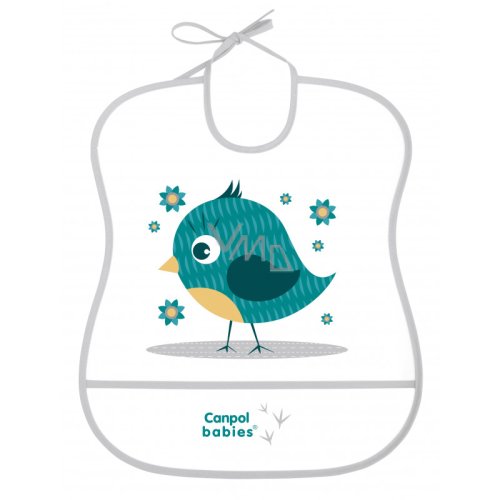 Praktický bryndák vyrobený z plastové fólie chrání oděv dítěte před ušpiněním. Speciální kapsa zachytí zbytky pokrmu. Dodává se v několika barevných provedeních. Čistěte vlhkým hadříkem nebo houbou. Snadno se udržuje v čistotě.