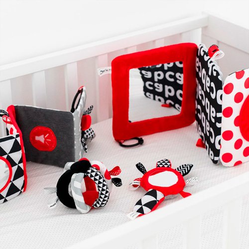 Proč jsou senzorické hračky tak důležité? Zrak dítěte je po narození nejméně rozvinutým smyslem. Tma, která převládá v děloze, nedovoluje, aby se zrak v prenatálním období plně rozvinul. Po narození je zrak dítěte rozmazaný a mlhavý. Dítě vidí pouze obrysy v rozmezí 20-30 cm, velké tvary a prvky z prostředí. Asi po měsíci začne vidět barvy, zpočátku červené a černé. Asi za tři měsíce si začne všímat dalších výrazných barev. Přibližně ve věku šesti měsíců začíná vidět detaily na obrázcích a také vidí mnohem jasněji. Ve dvanáctém měsíci života je již zrak dítěte plně vyvinut jako u dospělého a stává se skvělým nástrojem pro objevování světa. Senzorické hračky z nové kolekce SENSORY tak pomáhají stimulovat zrak dítěte a trénují schopnost soustředit pozornost už od prvních týdnů života.