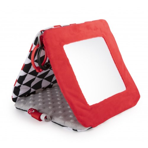 Kontrastní závěsné zrcadlo SENSORY je ideálním pomocníkem pro první rok života miminka. Hračku je možné jednoduše upevnit na požadované místo - kočárek, postýlku nebo autosedačku, ale i jednoduše skládat do tvaru pyramidy nebo rozkládat do tvaru knížky. Praktický doplněk disponuje šustícími a pískacími elementy a zrcátkem. Senzorické barvy a různé textury materiálů stimulují rozvoj smyslů dítěte.