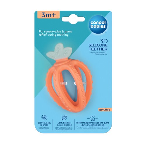 Silikonové kousátko Canpol babies s výstupky bylo navrženo s ohledem na pohodlí a vývoj dítěte. Pestrá struktura kousátka jemně masíruje dásně a tiší bolest při prořezávání zoubků. Tvar kousátka je ideální pro malé dětské ručičky a usnadňuje uchopení.