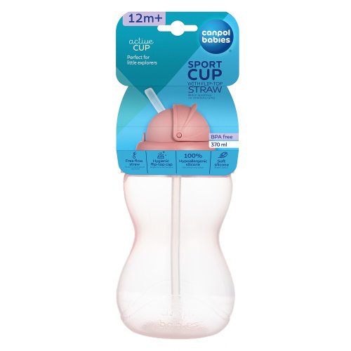 Praktická sportovní lahev o objemu 370 ml byla navržena tak, aby děti byli stále hydratované při hře, učení a dobrodružstvích na čerstvém vzduchu nebo ve školce. Skvělá volba pro batolata, která již umí samostatně pít a děti chodící do školky. Měkká siliknová slámka s volným průtokem je šetrná k citlivým dásním dítěte. Sportovní lahev je vyrobena z nerozbitného a bezpečného plastu. Je lehká a odolná proti poškození. Tvar lahve usnadňuje držení v dětských rukou a velký otvor usnadňuje plnění a mytí.