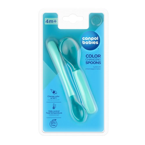Sada jedinečných dětských lžiček na krmení je ideální pro rozšiřování jídelníčku miminka. Lžičky usnadňují kontrolu teploty podávaného jídla – při příliš vysoké teplotě jídla (cca 40°C) změní barvu na světlejší. Lžičky jsou velmi praktické. Lžička s delší rukojetí je vhodná pro období, když začínáte rozšiřovat jídelníček miminka, usnadňuje krmení ze zavařovací sklenice a menší lžička bude perfektní pro naučení samostatného krmení.