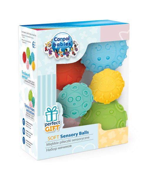 Jemné senzorické míčky jsou určeny především pro zábavu a objevování v prvních měsících života miminek. Tyto míčky pomáhají rodičům podpořit vývoj jejich miminek ve velmi ranné fázi. Rozmanité tvary a materiály poskytují různorodé senzorické vjemy. Umožňují trénovat úchop a stimulovat dotyk. Svěží, veselé barvy povzbudí malá stvoření k aktivitě a hře. Míčky mohou být také použity pro jemnou masáž. Set obsahuje 6 míčků různých barev, které jsou zabaleny v atraktivní dárkové krabici a neobsahují BPA.