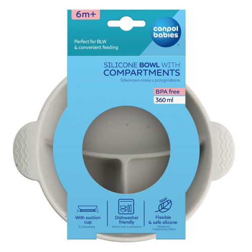 Silikonová miska s přihrádkami a přísavkou je ideální pro první příkrmy vašeho miminka na začátku jeho dobrodružství s rozšiřováním jídelníčku například metodou BLW (baby-led weaning).