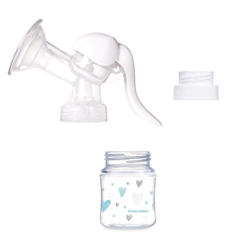 Sada obsahuje: tělo odsávačky mateřského mléka s trychtýřem a krytem, lahvičku s širokým hrdlem 120 ml se savičkou 3 m+, adaptér na lahve.