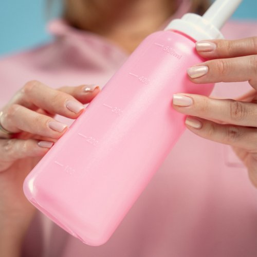 Intimní sprcha je navržena tak, aby pravidelná intimní hygiena byla rychlá a jednoduchá, ať jste kdekoli: v nemocnici, doma nebo na cestách. Dlouhý nástavec sprchy 17 cm a dvě koncovky s různými úhly trysek umožňují lepší přizpůsobení proudu vody. Po obracení láhve směrem dolů a jejím stlačení vypustí sprcha proud vody pod očekávaným úhlem, a tím se snáze dostanete na těžko dostupná intimní místa. Usnadňuje očištění těžko dostupných partií, aniž byste se museli ohýbat. Zvlášť během těhotenství je sprška velmi užitečná, protože břicho těhotné ženy může ztížit pravidelné čištění intimních partií.