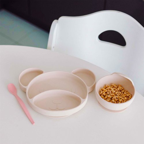 Toto je zvláštní okamžik, kdy vaše dítě začne jíst samo. Silikonový talíř s přísavkou MEDVÍDEK je ideální pro první příkrmy vašeho miminka na začátku jeho dobrodružství s rozšiřováním jídelníčku, včetně metody BLW.