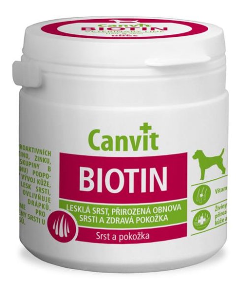 Canvit Biotin je komplex proaktivních látek (biotinu, zinku, vitaminu skupiny B a methioninu) podporuje zdravý vývoj kůže, kvalitu a lesk srsti, pozitivně ovlivňuje rohovinu …