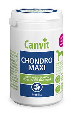 Canvit Chondro Maxi je kombinací unikátních chondroprotektivních a bioaktivních látek pro velké psy: chondroitin sulfátu, glukosamin sulfátu, kolagenu, vitamínu C a organicky vázaných stopových prvků. Tyto látky posilují chrupavku, zvyšují mechanickou odolnost kloubů, zpevňují vazy a šlachy a celkově přispívají ke zlepšení pohyblivosti.