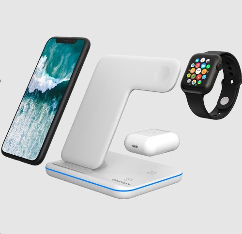 Bezdrátová nabíjecí stanice 3-v-1 pro zařízení podporující technologii QI