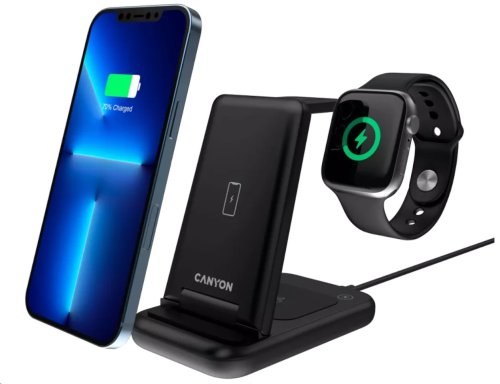 Nabíjecí stanice Canyon WS-304 vás osvobodí od chaosu nabíjecích kabelů. Funguje s většinou chytrých telefonů a všemi zařízeními vyhovujícími standardu Qi, včetně iPhonu, hodinek Apple Watch a sluchátek AirPods.