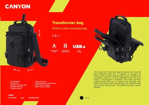 Tato brašna Canyon CB-1 se stane vaším oblíbeným každodenním společníkem! S objemem 3,5 l je kompaktní, pohodlná a všestranná. Díky chytrému nastavitelnému popruhu můžete tašku nosit na rameni nebo jako batoh. A nezapotíte se - zadní strana je odvětrávaná. Tři vnitřní a tři vnější kapsy vám umožní přehledně uspořádat každodenní nošení. I když bude pršet jako z konve, tato taška nenechá vaše věci zmoknout - použitý materiál je vodoodpudivý.