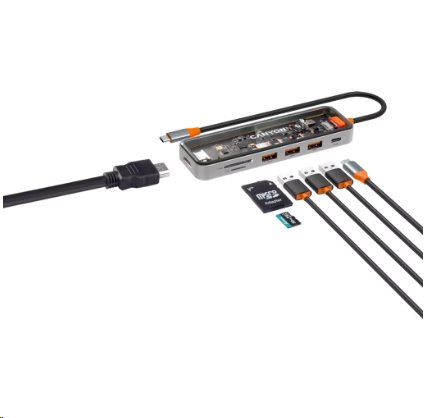Připojení USB-C 3x USB 3.0 HDMI 4K Ultra HD, 30 Hz USB C se 100W PD SD/microSD se dvěma sloty Kompatibilní s Windows a MacOS Materiál - slitina zinku a tvrzené sklo Barva vesmírně šedá