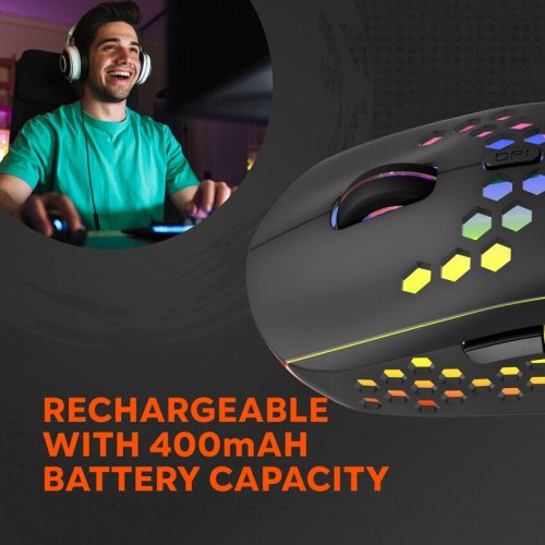 Lehká konstrukce s honeycomb designem zajišťuje proudění vzduchu a pohodlí i při dlouhých herních maratonech. RGB podsvícení dodá tvému setupu styl a atmosféru.