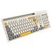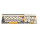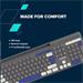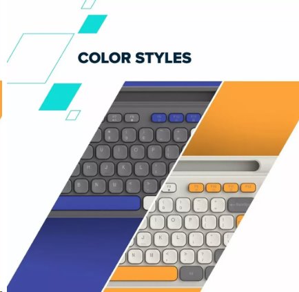 Tato klávesnice je k dostání ve dvou barevných kombinacích: světle šedé s oranžovými akcenty a tmavě šedé s modrými akcenty.