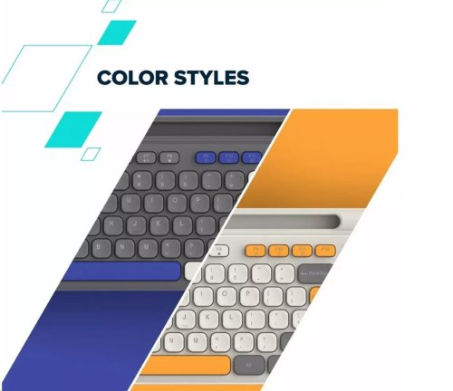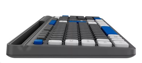 Tato klávesnice je k dostání ve dvou barevných kombinacích: světle šedé s oranžovými akcenty a tmavě šedé s modrými akcenty.