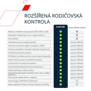 Nastavte, k jakým funkcím má dítě přístup - uzamkněte hry, galerii nebo přehrávač podle potřeby. Hodinky se tak používají zodpovědně a podle vašich pravidel.