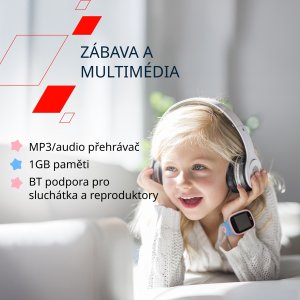 MP3/audio přehrávač s 1 GB paměti a podporou Bluetooth pro sluchátka i TWS reproduktory nabízí dětem spoustu možností, jak si užít hudbu a pohádky kdykoli a kdekoli.