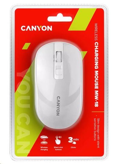 CANYON myš MW-18PW, optická, tichá, s bezdrátovým nabíjením 300mAh, 4.tl., až 1600 DPI, perleťově bílá