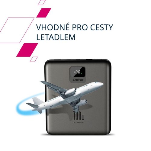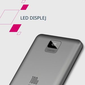 Powerbanka Canyon PB-2008 má kapacitu 20 000 mAh a podporuje rychlé nabíjení Power Delivery až 100 W, ideální pro notebooky, telefony i tablety.