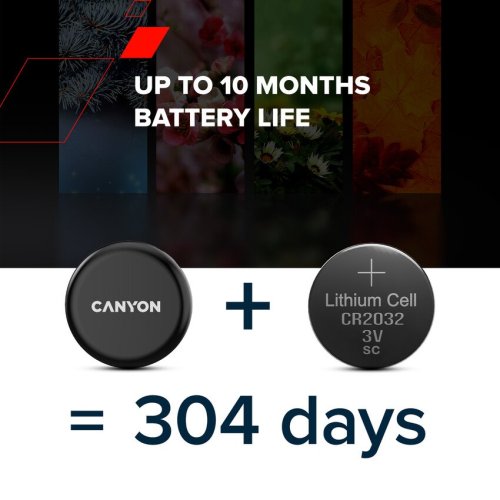 Vyměnitelná baterie CR2032 zvládne až 10 měsíců nepřetržitého provozu. Výměna je jednoduchá – stačí pootočit krytem.