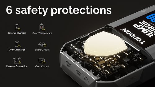 JumpSurge 1200 PRO je vybaven chytrým a bezpečným systémem, který poskytuje 6 různých ochran pro bezpečí zařízení i automobilu. Inovativní senzory Stop Spark™ přidávají další vrstvu ochrany proti jiskření, což zvyšuje bezpečnost při manipulaci. Navíc obsahuje bezpečnostní kontrolky, které upozorňují na nesprávné použití nebo nesprávné připojení, a poskytuje tak dodatečnou ochranu, kterou potřebujete.