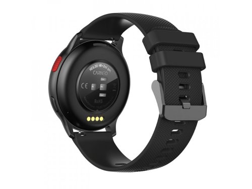 Všechna data vaší aktivity Moderní fitness smart hodinky Carneo Heiloo HR+ druhé generace v elegantním černém provedení disponují kulatým Super HD AMOLED barevným displejem. Umožňují měření srdečního tepu, stresu, BMI, ujeté vzdálenosti, monitorování spálených kalorií či kvality spánku. Jejich součástí je 220mAh baterie s výdrží 2 až 5 dní. Podle certifikace IP67 jsou odolné vůči vodě a prachu. Jsou kompatibilní s operačním systémem iOS a Android. Hodinky mají na dotek příjemný silikonový řemínek, který lze vyměnit za řemínek v jiné barvě či kožený a tím pádem změnit hodinkám sportovní vzhled za manažerský. Vkusný, jednoduchý a luxusní design se snadno kombinuje k obleku či volnočasovému outfitu. Hodinky i aplikace jsou kompletně v češtině, takže si budete jistě spolu dobře rozumět.