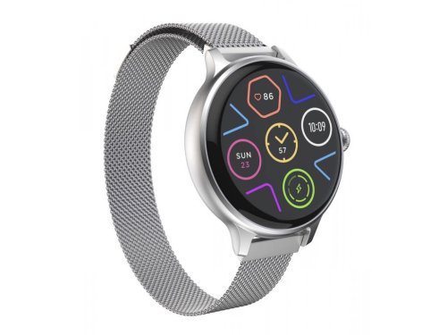 Všechna data vaší aktivity Moderní fitness smart hodinky Carneo HERO mini HR+ v elegantním stříbrném provedení disponují kulatým Super HD AMOLED barevným displejem. Umožňují měření srdečního tepu, stresu, BMI, ušlé vzdálenosti, monitorování spálených kalorií či kvality spánku. Jejich součástí je 230mAh baterie s výdrží 3 až 4 dny. Podle certifikace IP67 jsou odolné vůči vodě a prachu. Jsou kompatibilní s operačním systémem iOS a Android. Hodinky mají luxusní Milánský, kovový řemínek v zlatomrůžové barvě, který lze vyměnit za silikonový řemínek v jiné barvě či kožený a tím pádem změnit hodinkám manažerský vzhled za sportovní. Vkusný, jednoduchý a luxusní design se snadno kombinuje k obleku či volnočasovému outfitu. Hodinky i aplikace jsou kompletně v češtině, takže si budete jistě spolu dobře rozumět. Součástí balení je také silikonový, šedý řemínek.