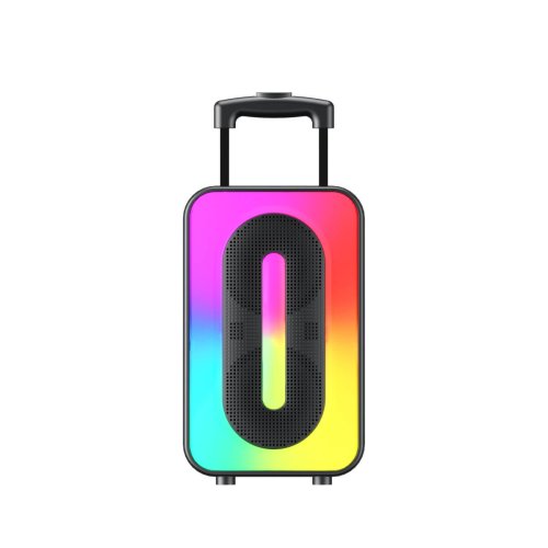 TECHNICKÉ PARAMETRY Velikost:255 x 225 x 405 mm Váha:2.8kg Barva:Černá Podpora profilů:A2DP, AVRCP, HFP, HSP Verze Bluetooth:V5.0 Pracovní rozsah:do 10 metrů Počet reproduktorů:2 x 16.5cm Výstup reproduktorů:P.M.P.O. 600W Frekvenční odezva:80HZ-20KHz Napětí baterie:4000 mAH Nabíjecí napětí baterie:5V Doba nabíjení baterie:2-3 hodiny Vydrž:4 hodiny v závislosti na zvolené hlasitosti Pohotovostní režim:20 hodin Vstup:Bluetooth, AUX, USB klíč, SD karta, FM rádio