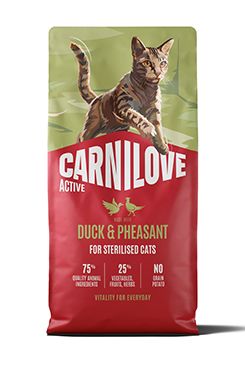 Tato energeticky vyvážená receptura s kachním a bažantím masem respektuje přirozené výživové potřeby sterilizovaných koček. Vysoce stravitelné živočišné bílkoviny podporují vitalitu a pomáhají udržovat štíhlou svalovou hmotu po sterilizaci. Přidaná vláknina a prebiotika podporují pocit sytosti a zdravé trávení, zatímco dýně přispívá k pohodlí trávení. Brusinky a rakytník řešetlákový přispívají ke zdraví močových cest a přirozené obranyschopnosti. Lněné semínko a lososový olej pomáhají udržovat zdravou kůži a hustou, hladkou srst. Kompletní krmivo pro sterilizované kočky.