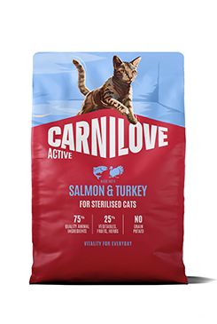 Tato energeticky vyvážená receptura s čerstvým lososem a krůtou respektuje přirozené výživové potřeby sterilizovaných koček. Vysoce stravitelné živočišné bílkoviny podporují vitalitu a pomáhají udržovat štíhlou svalovou hmotu po sterilizaci. Losos je přirozeným zdrojem omega-3 mastných kyselin, které pomáhají udržovat zdravou kůži a hladkou srst, zatímco přidaná vláknina a prebiotika podporují pocit sytosti a zdravé trávení. Brusinky a rakytník řešetlákový, bohaté na antioxidanty, podporují zdraví močových cest a přispívají k přirozené odolnosti. Kompletní krmivo pro sterilizované kočky.