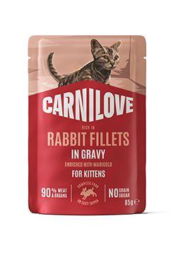 Jemné masové filety v delikátní šťávě pro koťata se snadno stravitelným králičí bílkovinou, která respektuje přirozené výživové potřeby během růstu. Měsíček napomáhá trávení, zatímco lněný olej vyživuje vyvíjející se kůži a srst. Kompletní krmivo pro koťata.