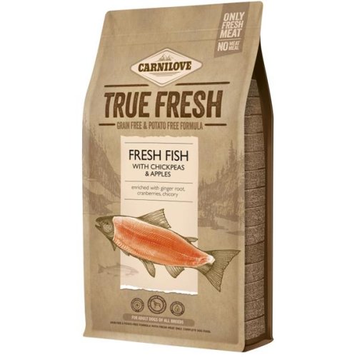 Složení: čerstvá ryba (60 %), hrách, kuřecí tuk (konzervováno tokoferoly), cizrna (4 %), sušená jablka(4 %), červená čočka, dýně, lososový olej (3 %), přírodní aroma, mrkev, sušené vaječné skořápky, protein okřehku (0,5 %), spirulina (0,3 %), sušený rakytník řešetlákový (0,2 %), sušený kořen zázvoru (0,1 %), sušené borůvky (0,1 %), sušený rozmarýn (0,1 %), sušené brusinky (0,1 %), sušený tymián (0,1 %), glukosamin (0,026 %), slávka zelenoústá (0,025 %), chondroitin sulfát (0,016 %), pivovarské kvasnice (zdroj mannanoligosacharidů, 0,015 %), kořen čekanky (zdroj fruktooligosacharidů, 0,01 %), juka schidigera (0,01 %). Analytické složky: hrubý protein 25 %, obsah tuku 15 %, vlhkost 10 %, hrubý popel 7 %, hrubá vláknina 4 %, vápník 1,3 %, fosfor 0,9 %, sodík 0,5 %, omega-3 0,6 %, omega-6 1,6 %, EPA (20:5 n-3) 0,15 %, DHA (22:6 n-3) 0,2 %. Nutriční doplňkové látky na 1 kg: vitamín A (3a672a) 20 000 m.j., vitamín D3 (3a671) 1 500 m.j., vitamín E (3a700) 400 mg, vitamín C (3a312) 250 mg, taurin (3a370) 1500 mg, L-karnitin (3a310) 50 mg, cholinchlorid (3a890) 1800 mg, niacinamid (3a315) 20 mg, biotin (3a880) 0,5 mg, zinek (3b606) 80 mg, železo (3b106) 60 mg, mangan (3b504) 35 mg, jód (3b201) 0,65 mg, měď (3b406) 15 mg, selen (3b810) 0,2 mg. Obsahuje přírodní antioxidanty: tokoferolové extrakty z rostlinných olejů (1b306(i)), askorbyl palmitát (1b304) a výtažek z rozmarýnu. Metabolizovatelná energie: 3 670 kcal/kg. Krmný návod: Pokud podáváte Carnilove poprvé, použijte menší množství a smíchejte jej s předešlým krmivem, postupně dávku Carnilove zvyšujte. Můžete podávat suché nebo smíchané s mokrým krmivem Carnilove. Doporučená denní dávka je uvedena v krmné tabulce a může se měnit v závislosti věku, velikosti, výkonu a prostředí. Ujistěte se, že má váš pes vždy dostatek čerstvé vody.